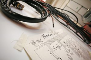 Once the new electrical system has been built and finished, we proceed with assembly on the car, also carried out using the techniques of the past.